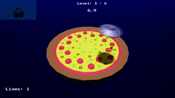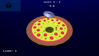 Alien Pizza Party is a small but skill-based space game that challenges its players to master the sensitive controls of its UFO. Inspired by traumatic childhood experiences with claw crane game machines, the player has not only limited time to move across mega-sized pizzas, but also just one shot to beam up the pineapple.